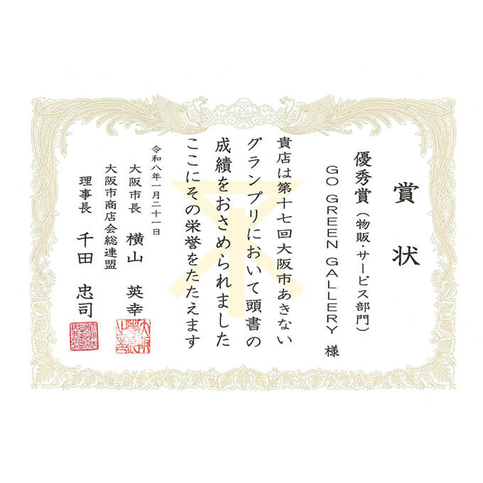 GO GREEN GALLERYが「第17回大阪市あきないグランプリ 優秀賞」を受賞