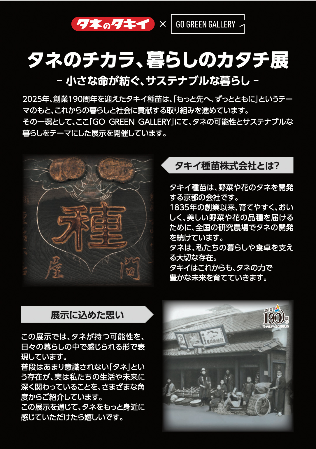 創業190周年を迎えたタキイ種苗が、タネの可能性とサステナブルな暮らしをテーマに展示を開催します。