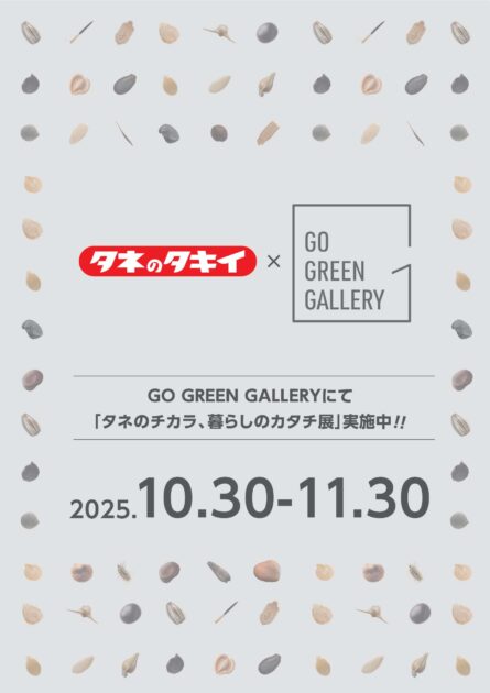 2025年10月30日(木)から11月30日(日)まで、GO GREEN GALLERY店頭にて「タネのチカラ 暮らしのカタチ展 — 小さな命が紡ぐ、サステナブルな暮らし —」を行います。