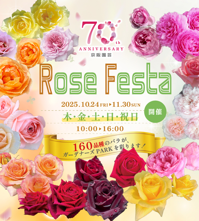 オープニングフェアとして、毎年好評を博してきた人気イベント「ローズフェスタ」を10月24日(金)~11月30日(日)の木・金・土・日・祝日に開催します。秋のシーズンにふさわしい多彩な品種のバラが“PARK”を美しく彩り、華やかな空間を演出します。